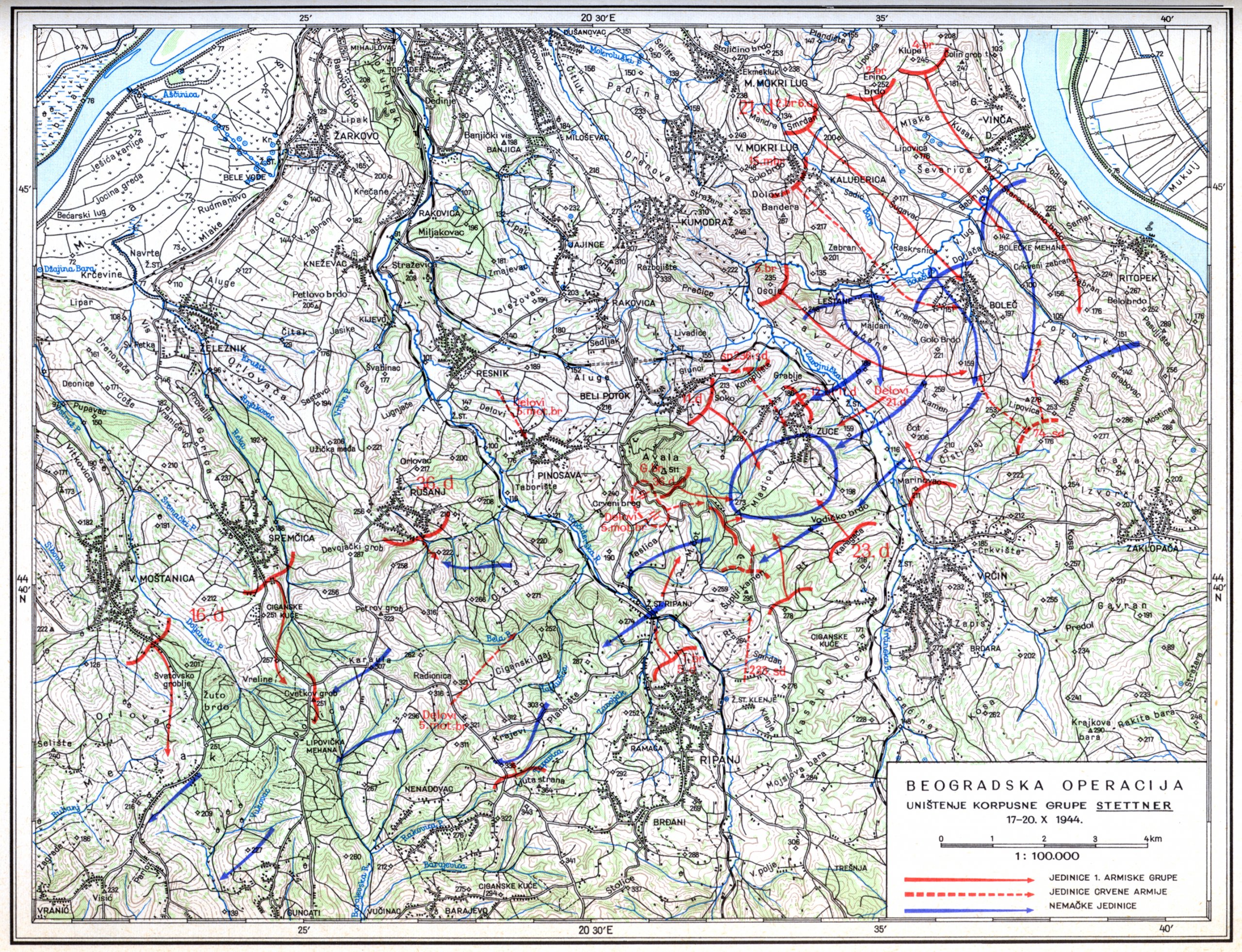 У таквој ситуацији је Врховни командант НОВ и ПОЈ, маршал Јосип Броз Тито, отпутовао 21. септембра у Москву и постигао споразум о будућим заједничким дејствима НОВЈ и јединица Црвене армије, а убрзо потом почеле су операције за ослобођење Србије, које су као главни стратегијски циљ имале ослобођење Београда. Све јединице 1. армијске групе предузеле су обимне припреме за извођење ове крупне операције. Почетком октобра 1944. Прва армијска група НОВЈ у наступању из западне Србије и Шумадије према Београду приближила се линији Топола—Младеновац—Обреновац, а јединице 3. украјинског фронта Црвене армије у продору из Бугарске и 75. стрељачки корпус 2. украјинског фронта из Румуније линији Дунав—Штубик—Бор—Зајечар. За то време трупе 2. украјинског фронта у наступању преко Баната избиле су на р. Тису. Штаб и. армијске групе примио је у Аранђеловцу, 6. октобра, од Врховног команданта радиограмом наређење којим је прецизирано да и. армијска група заједно са трупама Црвене армије учествује у нападу на Београд, да је жеља Врховног команданта (а с тим су се и Руси сложили), да у Београд прво уду јединице НОВЈ.