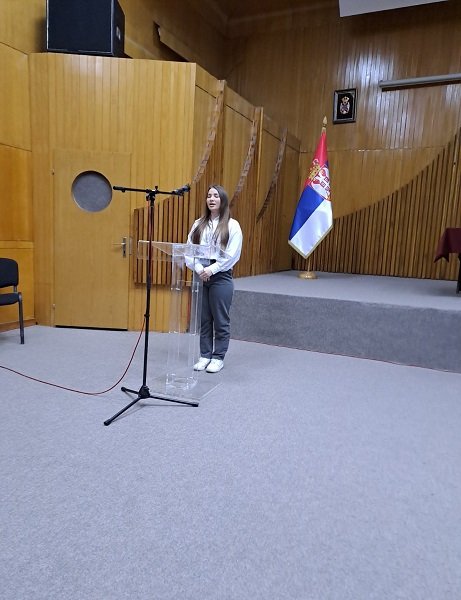 Неправедно би било у извештају са трибине о Октобарској револуцији не поменути и уметнчки угођај који је приредила студенткиња друге године Високе школе струковних студија за криминалистику и безбедност Анастасије Стевић. Девојка из Грачанице је божански лепим гласом интерпретирала химну „Боже правде“, песму о рату 1999. године „Јунаци са Кошара“ и стару српску песму „Жубор вода жуборила“.