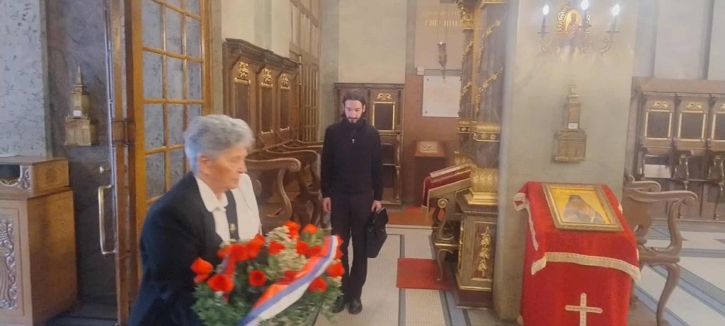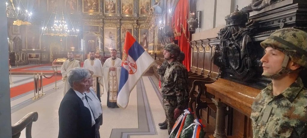 Државна церемонија одавања почасти и полагања венаца одржана је у Саборној цркви у Београду након помена свештенства СПЦ. Венце су, положили представници Министарства за рад, запошљавање, борачка и социјална питања, Министарства одбранe и Војске Србије и СУБНОР-а Месне заједнице Лаћарак.