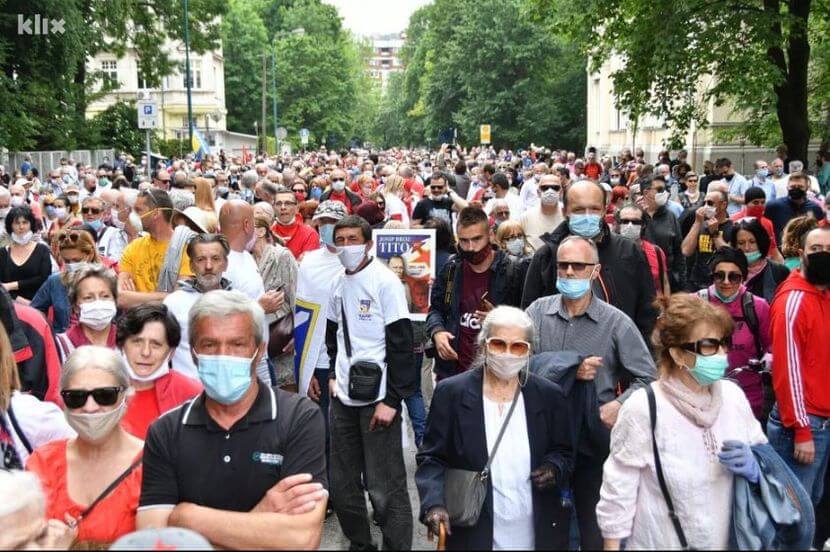 У протестној поворци су отишли од Марин Двора до споменика Вечна ватра. Грађани којих је, по сарајевским медијима, било неколико хиљада, испред Вечне ватре су певали песму “Вратиће се Валтер!” и узвикивали: “Ми смо Валтер!” и “Доле Блајбург!”. Певали су и „Bella Ciao“ и друге партизанске песме и извикивали антифашистичке пароле.