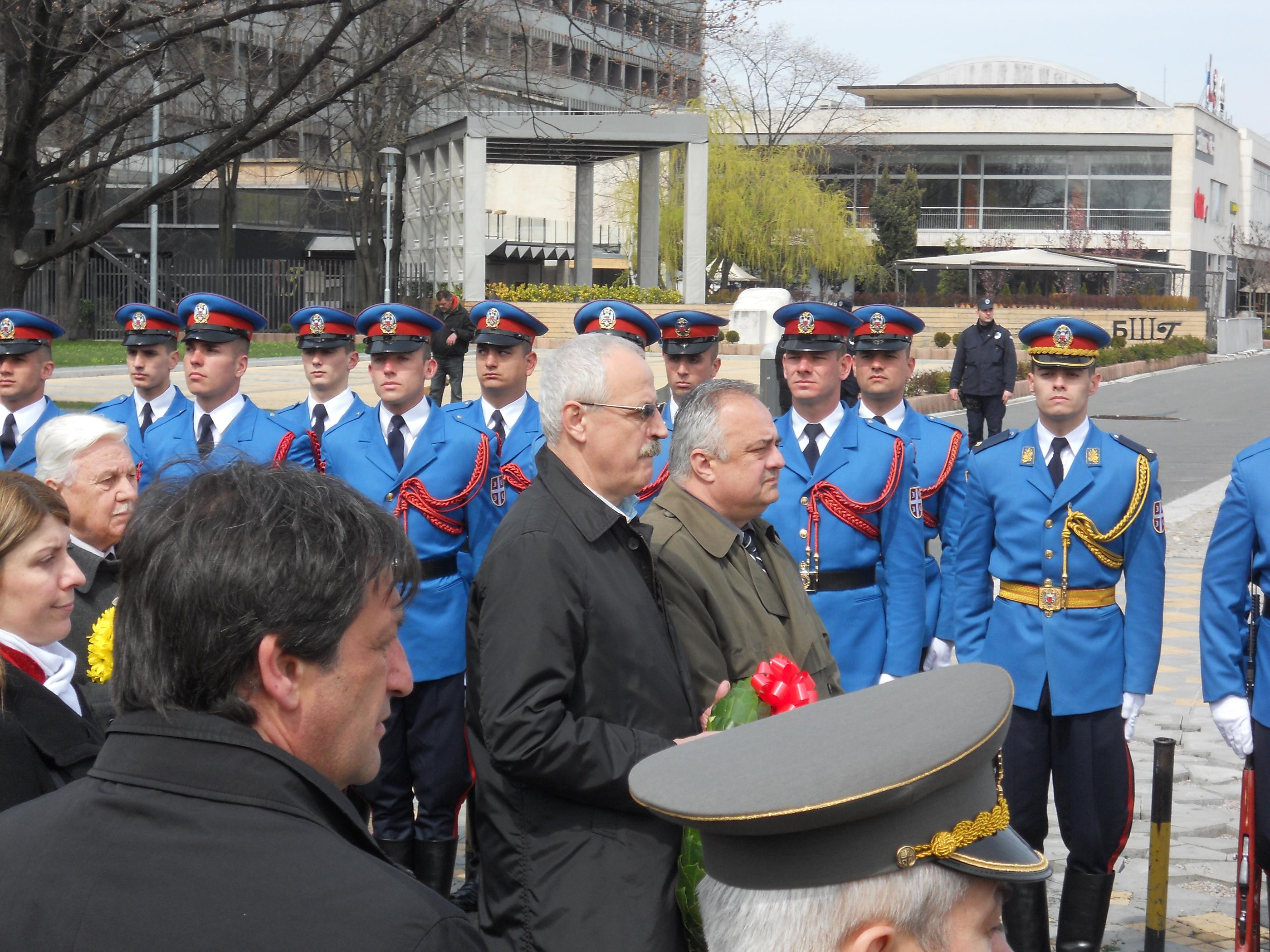 На земунском кеју је делегацију СУБНОР-а Србије предводио члан Председништва генерал Видосав Ковачевић, а на Новом гробљу, у Алеји жртава бомбардовања 1941, чланице Председништва Јелисавета Миловановић и Борка Нешковић. Ту је венац положио и државни секретар за борачку заштиту, Драган Поповић.