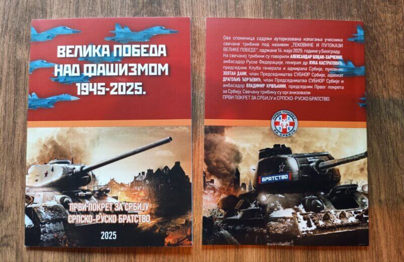 У издању Српско-руског Братства објављена је споменица „Велика Победа над фашизмом 1945-2025.“ која садржи ауторизована излагања учесника свечане трибине под називом „Тековине и путокази Велике Победе“, одржане 14. маја 2025. године у Београду. Свечану трибину су организовали Први покрет за Србију и Српско-руско Братство. На трибини су говорили: Александар Боцан-Харченко, амбасадор Руске Федерације, амбасадор Владимир Кршљанин, председник Првог покрета за Србију, генерал др Лука Кастратовић, председник Клуба генерала и адмирала Србије, пуковник Золтан Дани, члан Председништва СУБНОР Србије, и адвокат Драгољуб Ђорђевић, члан Председништва СУБНОР Србије.